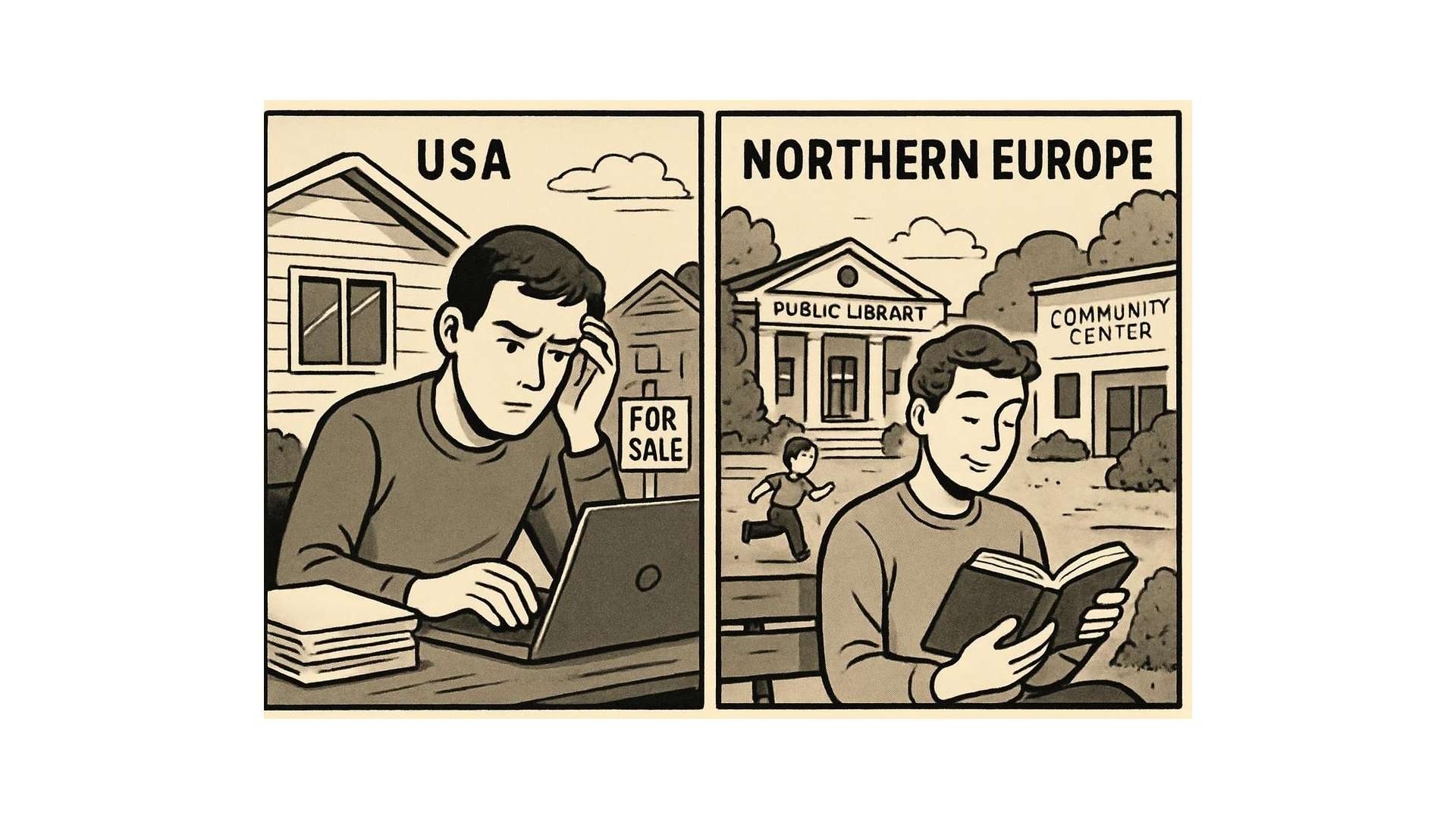 Die materielle Lebensqualität – Wohnraum, Sicherheit, Gesundheitsvorsorge, Zugang zu Bildung – ist in Europa für viele Gruppen tendenziell höher oder stabiler, trotz nominal niedrigerer Einkommen. Ein deutscher Arbeitnehmer mag weniger verdienen, doch er muss sich nicht mit zehntausenden Dollar für eine Krebsbehandlung verschulden. Er kann seine Kinder kostenfrei zur Universität schicken. Er erhält bei Arbeitslosigkeit nicht nur kurzfristige Hilfe, sondern langfristigen Schutz.