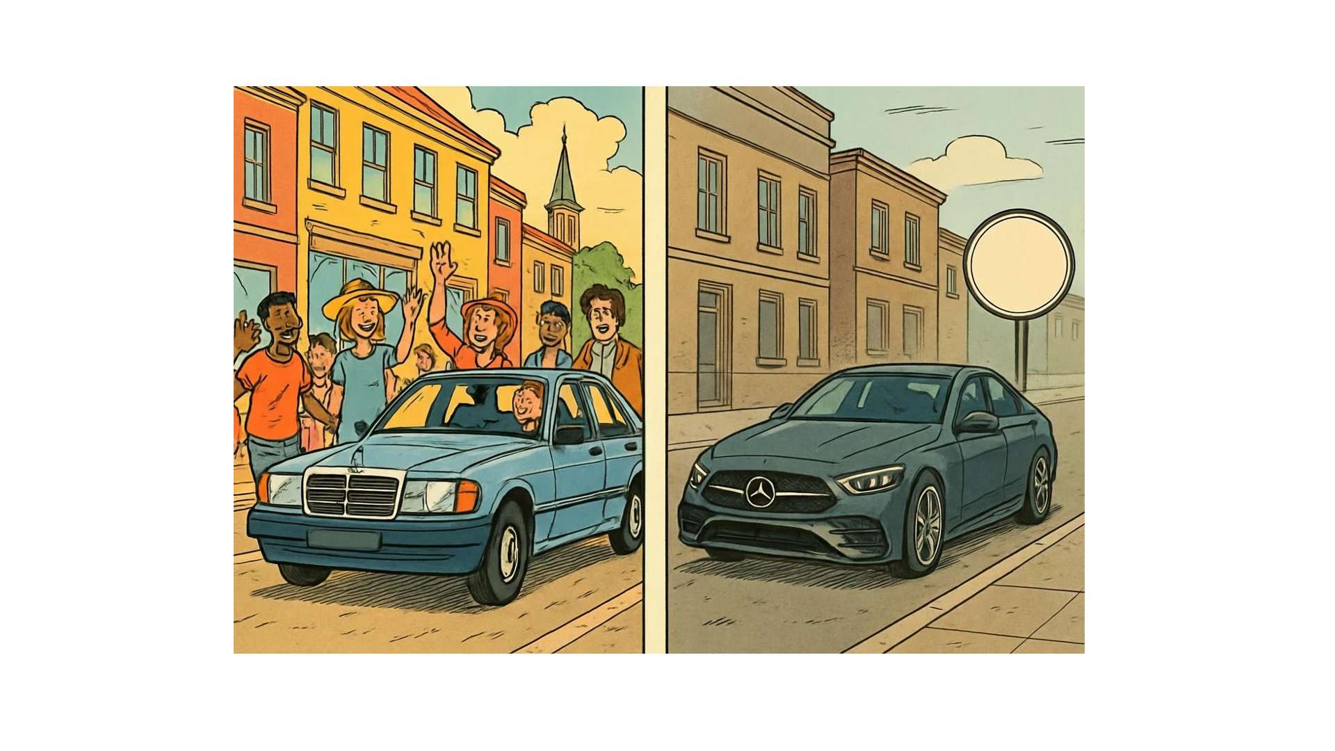 Genau diese Entwicklung erleben wir heute. Mercedes-Benz kämpft mit sinkenden Marktanteilen, wirtschaftlichen Turbulenzen und einem Imageverlust, der die einst so strahlende Marke beschädigt hat. Die Luxusstrategie, die Sicherheit und Differenzierung versprach, erweist sich als Falle: Ohne starke Volumenmodelle gibt es keine Stabilität, keine breite Marktdurchdringung, keine Generation junger Käufer, die mit der Marke aufwächst.