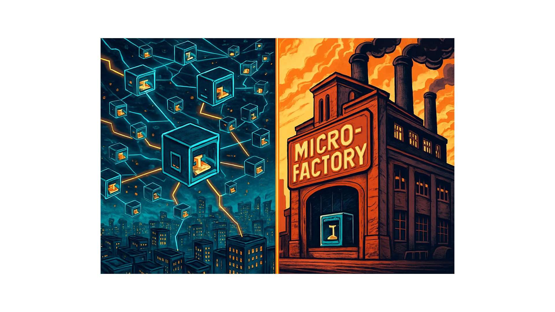 Die heutigen Fabriken sind Relikte einer Ökonomie der Skaleneffekte. Ihre Logik: Fixkosten durch Masse amortisieren, Spezialisierung durch Volumen rechtfertigen, Effizienz durch Standardisierung erreichen. Das Ergebnis sind Großanlagen, die auf Auslastung optimiert sind – monofunktional, unflexibel, träge. Ein Werk, das Motoren baut, kann keine Getriebe produzieren. Eine Produktionslinie, die für Modell A ausgelegt ist, läuft leer, wenn Modell B gefragt ist.