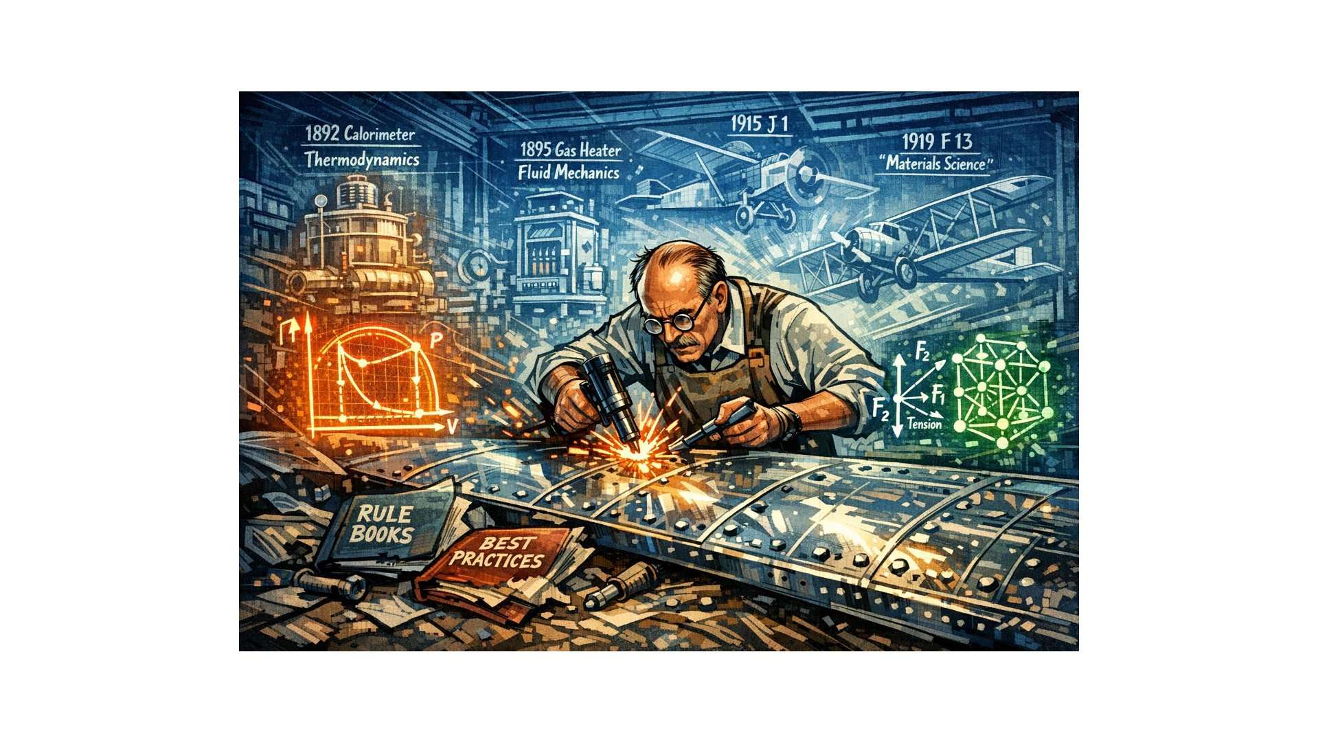 Junkers‘ eigene Biografie demonstriert, dass das deutsche System durchaus Innovatoren hervorbrachte – aber charakteristischerweise gegen seine eigene Logik, nicht durch sie. Seine Entwicklung des Ganzmetallflugzeugs, seine Kalorimeter, seine Gasmotoren entstanden nicht aus der Anwendung von Lehrbuchregeln, sondern aus der konsequenten Ableitung aus physikalischen Prinzipien.