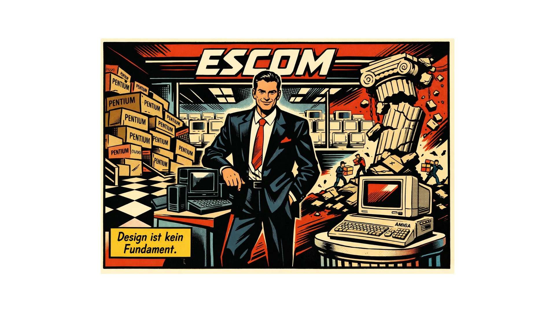 Die schwarzen Gehäuse der „Black Label Edition“ von 1992 waren kein Designgag, sondern ein strategisches Signal. Sie kommunizierten, was Produktspezifikationen nie können: Andersartigkeit. Peter Drucker hat früh darauf hingewiesen, dass Unternehmen weniger an Produkten als an wahrgenommenen Nutzenversprechen gemessen werden. ESCOM verkaufte nicht Prozessoren, sondern Distinktion. Das funktionierte – bis zur Systemgrenze.