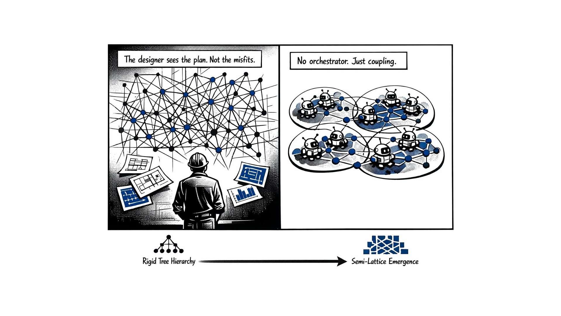 Christopher Alexander wollte verstehen, warum gutes Design so selten gelingt. Was er herausfand, ist eine Theorie institutionellen Versagens – geschrieben 1964, bevor die Informatik das Wort „Systemarchitektur“ kannte und bevor Luhmann die Systemtheorie formalisierte.