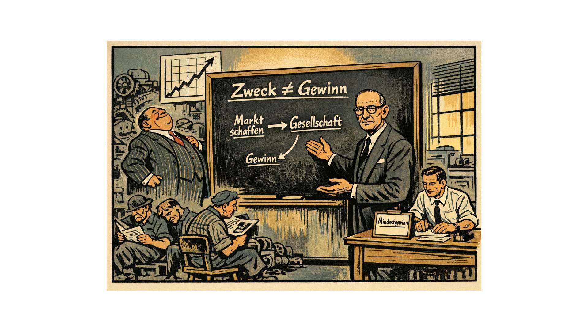 Die herrschende Antwort auf die Frage, was ein Unternehmen sei, lautet seit mindestens einem Jahrhundert: ein Instrument zur Erzielung von Gewinn. Drucker verwirft diese Antwort nicht nur als falsch, sondern als irreführend. Nicht weil Gewinn ohne Bedeutung wäre, sondern weil die Verwechslung von Zweck und Ergebnis eine verhängnisvolle Fehlkonstruktion ist — für das Denken über Unternehmen ebenso wie für die Praxis des Managements selbst.