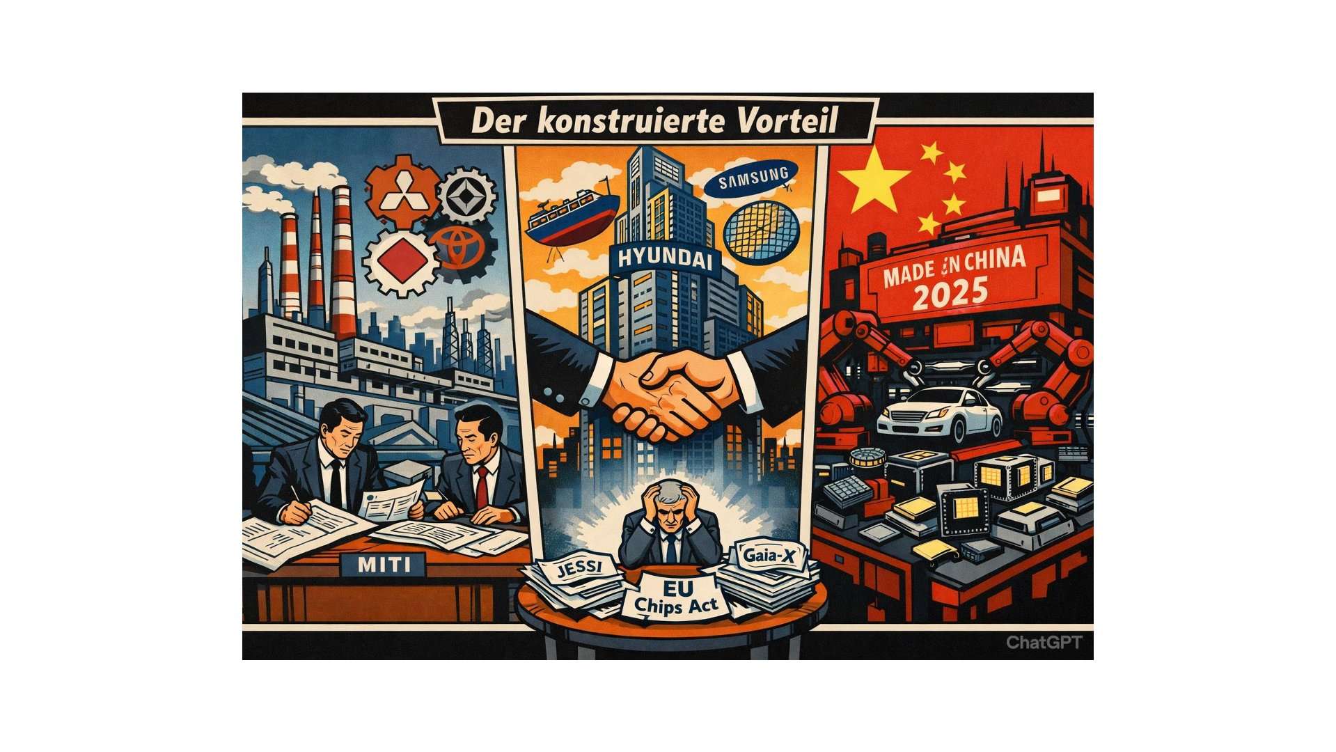 Japan, Südkorea und China haben mit aktiver Industriepolitik technologische Weltgeltung erlangt – mit Werkzeugen, die im deutschen Ordoliberalismus als Häresie gelten. Dabei war die Deutschland AG selbst eine Art Keiretsu. Der Unterschied: Während Ostasien Industriestrukturen konstruierte, konserviert Europa sie – per Subvention, Lobbyismus und impliziter Staatsgarantie. JESSI scheiterte, die Automobilindustrie verschlief den Wandel. Airbus bleibt die seltene Ausnahme. Ein Vergleich, der unbequeme Fragen stellt.