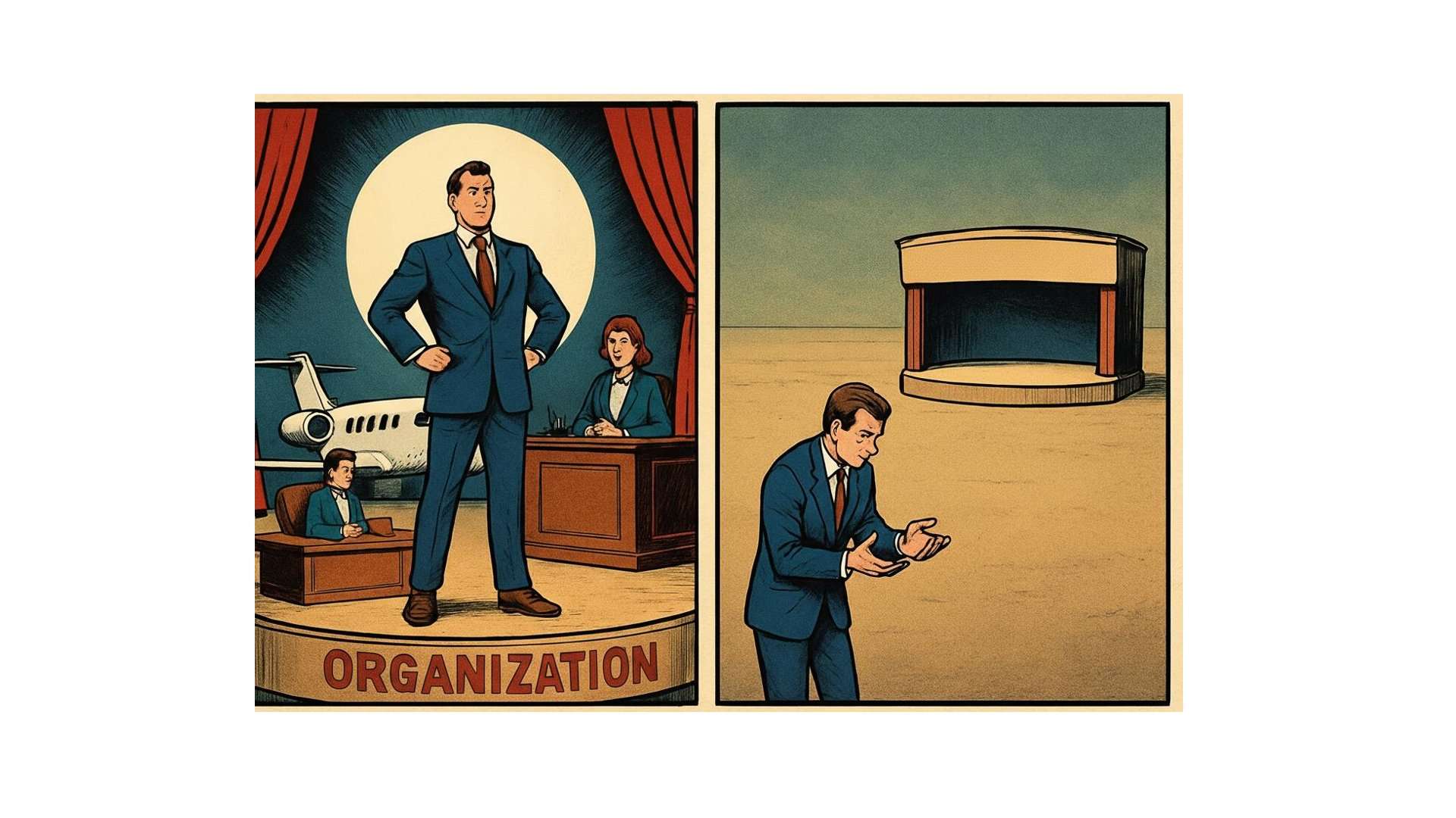 Wer bin ich, wenn die Organisation wegfällt? Ein Beitrag über Macht, Status und die schmerzhafte Erkenntnis, dass gesellschaftliche Bedeutung oft nur geliehen ist – und darüber, wie Organisationen ihre Schöpfer überleben und zu unsterblichen Bühnen werden, auf denen Menschen vergängliche Rollen spielen.