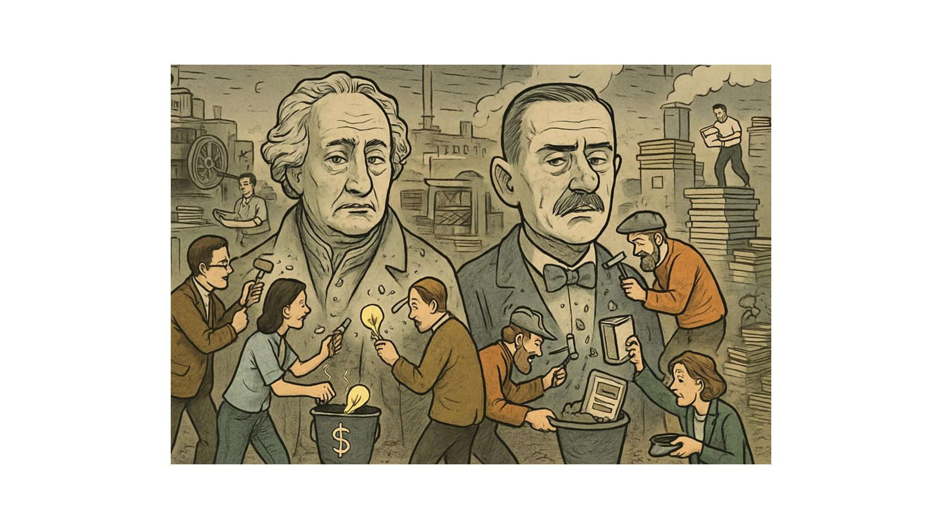 Goethe und Thomas Mann werden seit Jahrzehnten im deutschen Kulturbetrieb zu Tode verwertet. Immer neue Biografien, immer weitere Deutungen, immer abseitigere Nischenaspekte – doch was bleibt von der künstlerischen Substanz, wenn die Heroen nur noch als Rohstoff für fremde Karrieren dienen? Ein Essay über die schamlose Kapitalisierung großer Talente durch Menschen, die nicht annähernd deren künstlerisches Format besitzen.