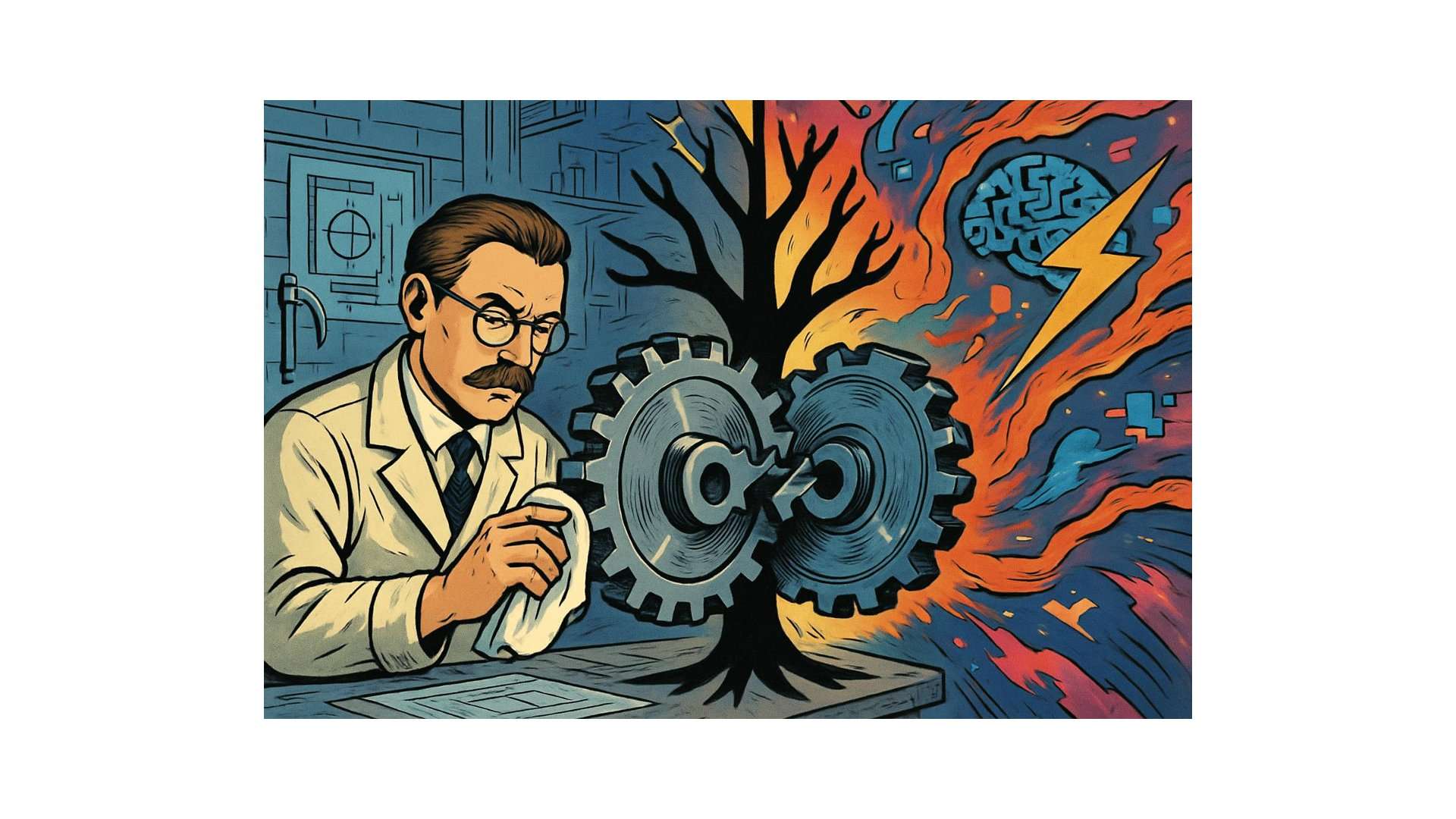 Cramers entscheidende These ist nun, dass beide Zeitformen nicht als unverbundene Gegensätze existieren, sondern in einem Getriebe zusammenhängen – im Zeitbaum. Reversible und irreversible Zeit greifen ineinander wie Zahnräder. Wer nur in der reversiblen Zeit operiert, in der Welt der Standards und Messungen, verliert den Anschluss an das Ereignishafte, an die Disruption. Wer nur der irreversiblen Zeit folgt, dem permanenten Wandel, verliert jede Stabilität, jede Verlässlichkeit, jede Qualität.