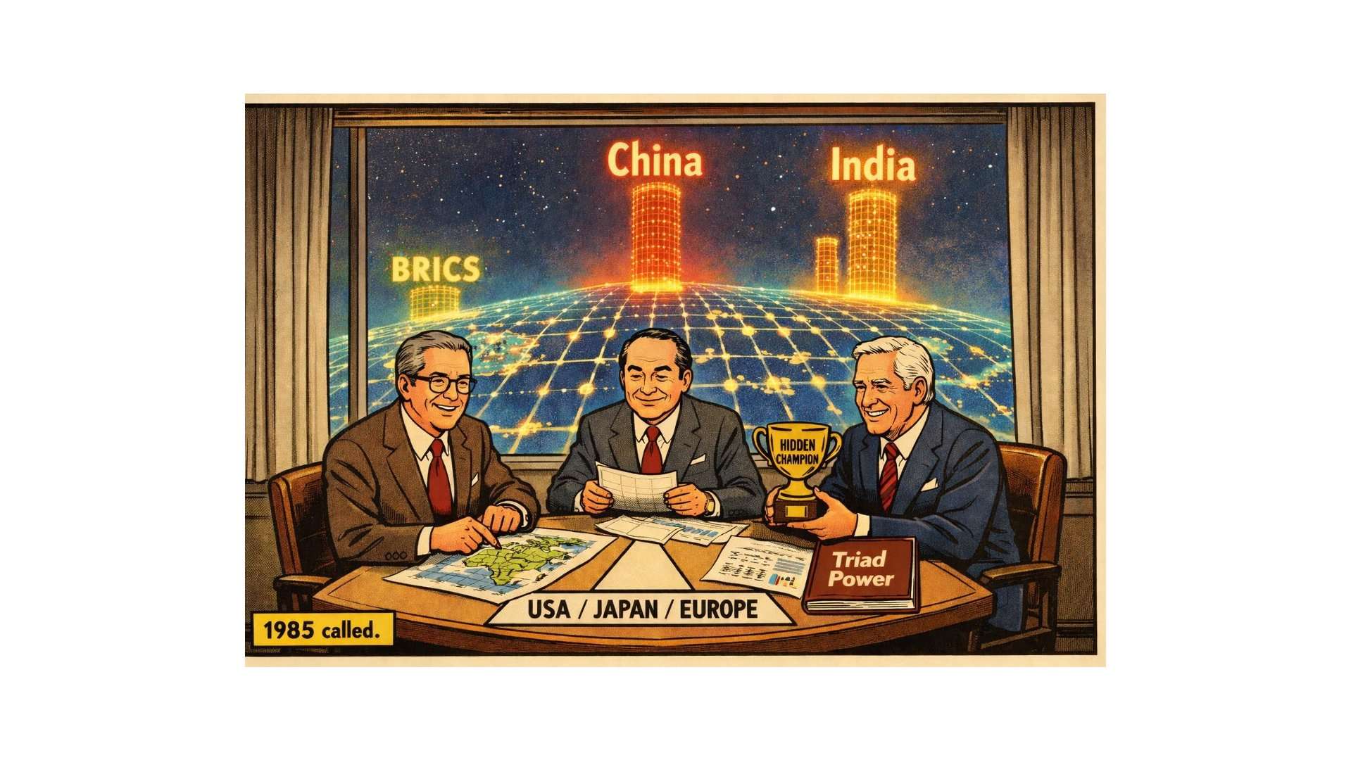 Kenichi Ohmaes „Triade“ und Hermann Simons „Hidden Champions“ waren mehr als Managementkonzepte – sie waren Weltbilder. Weltbilder, die ihre Zeit präzise trafen und eben deshalb nicht überlebt haben. Was bleibt, wenn die Kontrastfolie verblasst?