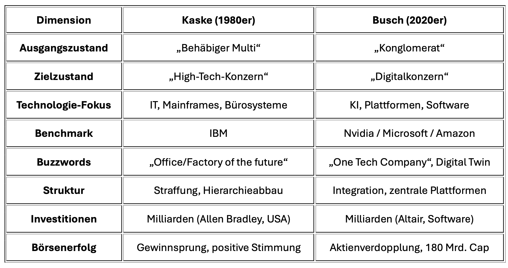 - Busch könnte realistischere Ziele haben als Kaske: Nicht „wie Nvidia werden“, sondern „Industrieausrüster mit starken digitalen Zusatzdiensten“